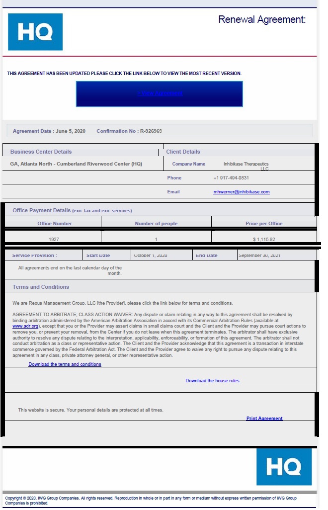1.9. Transferability: Subject to availability (which shall be determined in Our sole discretion) You may transfer Your agreement to alternative accommodation in the IWG network of Centers provided that Your financial commitment remains the same (or increases) and such transfer is not used to extend or renew an existing agreement. Such a transfer may require entry into a new agreement.