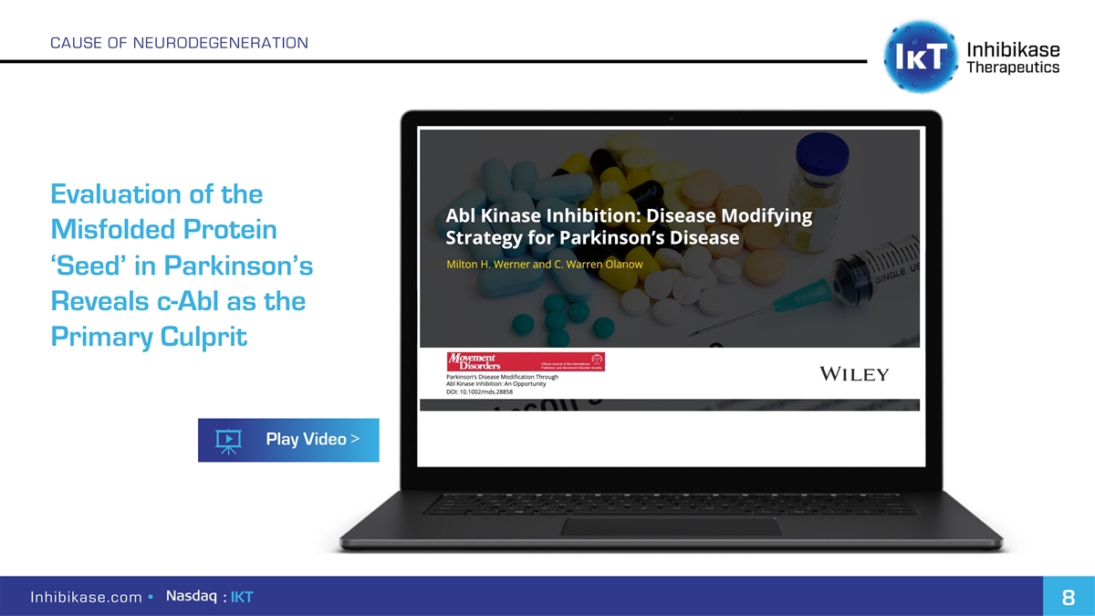 CAUSE OF NEURODEGENERATION Evaluation of the Misfolded Protein ‘Seed’ in Parkinson’s Reveals c-Abl as the Primary Culprit Play Video > Inhibikase.com • : IKT 8