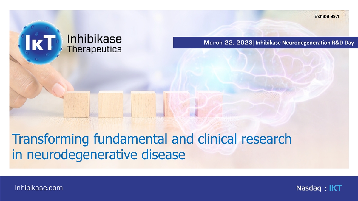 Exhibit 99.1 March 22, 2023| Inhibikase Neurodegeneration R&D Day Transforming fundamental and clinical research in neurodegenerative disease Inhibikase.com : IKT