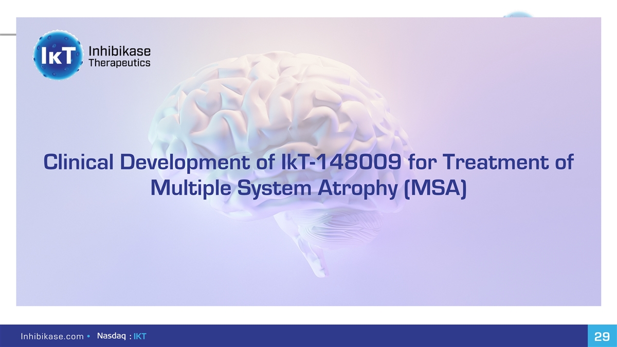 Clinical Development of IkT-148009 for Treatment of Multiple System Atrophy (MSA) In Inh hiib biik ka as se e.c .co om m • • :: IK IKT T 29 29