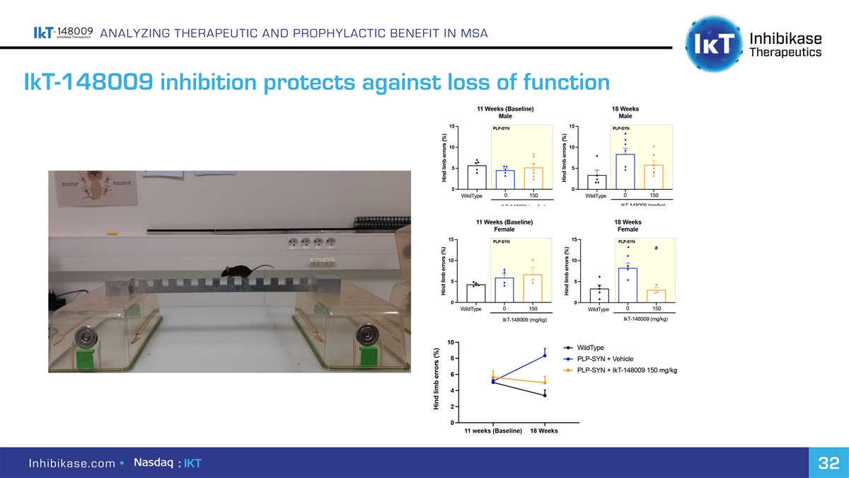 ANALYZING THERAPEUTIC AND PROPHYLACTIC BENEFIT IN MSA IkT-148009 inhibition protects against loss of function Inhibikase.com • : IKT 32