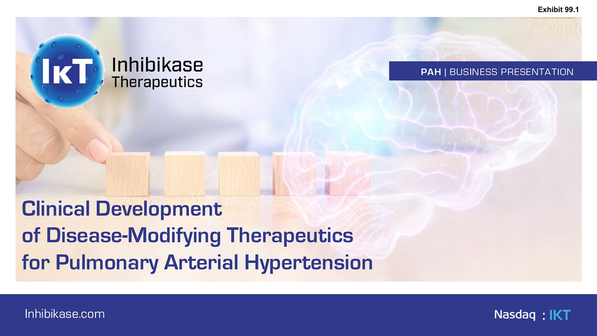 Exhibit 99.1 PAH | BUSINESS PRESENTATION Clinical Development of Disease-Modifying Therapeutics for Pulmonary Arterial Hypertension Inhibikase.com : IKT