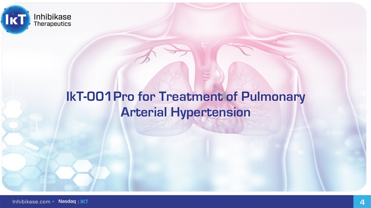 IkT-001Pro for Treatment of Pulmonary Arterial Hypertension IIn nh hiib biik ka as se e..c co om m • • :: IIK KT T 4 4